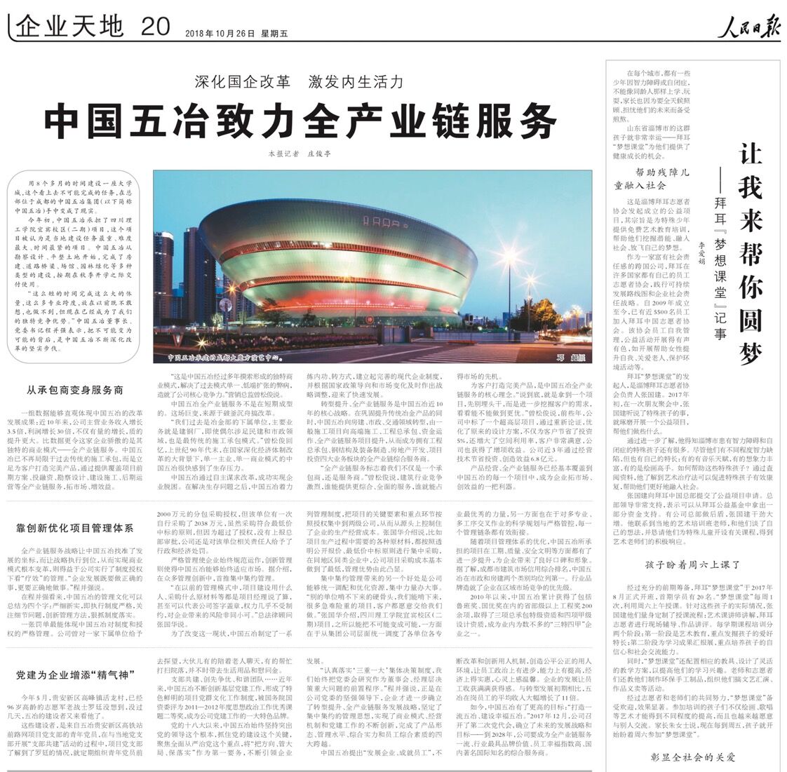 10月26日,《人民日報》以《深化國企改革?激發(fā)內(nèi)生活力——中國五冶致力全產(chǎn)業(yè)鏈服務(wù)》為題,對中國五冶集團深化國有企業(yè)改革的經(jīng)驗和成績進行了深度報道。