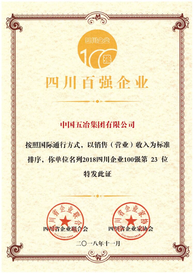 近日,2018年度四川省企業(yè)100強名單權威發(fā)布,中國五冶集團有限公司位居23位,較去年提升兩位。?