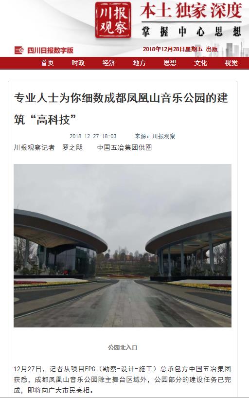 12月27日,中國五冶集團成都露天音樂公園項目迎來了首個媒體開放日,來自人民網(wǎng)、《四川日報》、《成都日報》、成都電視臺、封面新聞的十余名記者陸續(xù)進入項目現(xiàn)場,感受露天音樂公園的鳳凰雛形和建設一線的五冶速度。