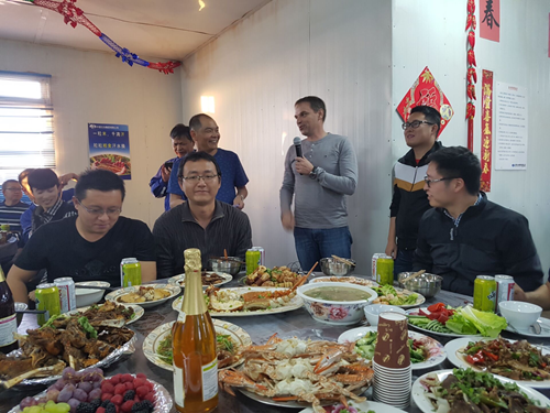 ? 聚餐開始,項(xiàng)目經(jīng)理舒真理及蒂森克虜伯現(xiàn)場(chǎng)經(jīng)理分別表達(dá)了對(duì)項(xiàng)目部全體員工一年來工作的認(rèn)可,同時(shí)表達(dá)了對(duì)大家新春的祝福。隨后項(xiàng)目部在年夜飯過程中穿插了一系列活動(dòng),大家在一片歡聲笑語中結(jié)束了除夕夜活動(dòng)。?? 因工作繁忙,遠(yuǎn)在沙特的五冶人無法回國(guó)與家人團(tuán)聚,這頓團(tuán)圓年飯緩解了廣大員工的思鄉(xiāng)之情,展現(xiàn)了公司、項(xiàng)目部對(duì)員工的關(guān)懷之情。短暫的休息兩天后,項(xiàng)目部員工將重回工作崗位之中,奮勇拼搏,為項(xiàng)目順利完工敬獻(xiàn)自己的一份力量。?
