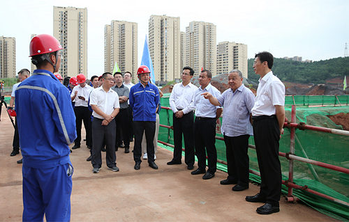 7月20日,程并強(qiáng)一行首先來到遂寧市,與遂寧市委書記邵革軍、市長鄧正權(quán),四川中煙工業(yè)有限責(zé)任公司黨組書記、總經(jīng)理彭傳新等一行共同調(diào)研了中煙印刷包裝產(chǎn)能項(xiàng)目、雁棲湖項(xiàng)目,慰問了項(xiàng)目員工,為他們送去了西瓜、消暑飲料、礦泉水等慰問品,聽取了項(xiàng)目規(guī)劃、建設(shè)推進(jìn)、黨建聯(lián)建等方面情況的匯報(bào),并就有關(guān)項(xiàng)目推進(jìn)事項(xiàng)進(jìn)行了交流探討,要求進(jìn)一步加大項(xiàng)目建設(shè)力度,以一流的工期、一流的質(zhì)量、一流的管理展示一流的品牌形象,為業(yè)主提供一流的服務(wù),為地方增進(jìn)發(fā)展的動能。隨后,大家參觀了遂寧市規(guī)劃館并進(jìn)行工作交流。