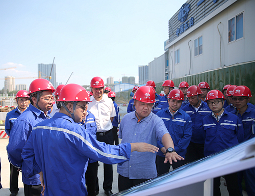 每到一處,程并強(qiáng)都深入項(xiàng)目現(xiàn)場,仔細(xì)察看項(xiàng)目總平布置、形象打造、安全文明綠色施工、技術(shù)質(zhì)量管理、裝配式建筑應(yīng)用等方面的情況,詳細(xì)聽取了項(xiàng)目總體規(guī)劃、工程組織、工期計(jì)劃、精細(xì)化經(jīng)營管理等方面工作的匯報(bào),并就項(xiàng)目打造的具體細(xì)節(jié)與一線管理人員進(jìn)行交流。