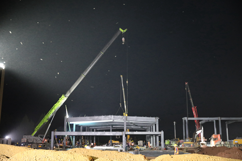 為將現(xiàn)場效能提升到極致,集團(tuán)、分公司、項(xiàng)目部三級(jí)“戰(zhàn)隊(duì)”發(fā)揮精細(xì)化管控優(yōu)勢(shì),對(duì)現(xiàn)場急于施工的土建、鋼構(gòu)、市政園林三個(gè)專業(yè)分設(shè)七個(gè)區(qū),通過策劃與部署結(jié)合、管控與調(diào)度搭配,保證多個(gè)工序平行施工、見縫插針、多點(diǎn)開花。同時(shí),依托五冶自身裝配式建造的巨大優(yōu)勢(shì),項(xiàng)目建設(shè)過程中90%以上應(yīng)用裝配式技術(shù),實(shí)現(xiàn)了工廠生產(chǎn)和現(xiàn)場裝配“兩頭熱”,在24小時(shí)輪班作業(yè)中創(chuàng)造出生產(chǎn)效率和履約速度的新高峰。