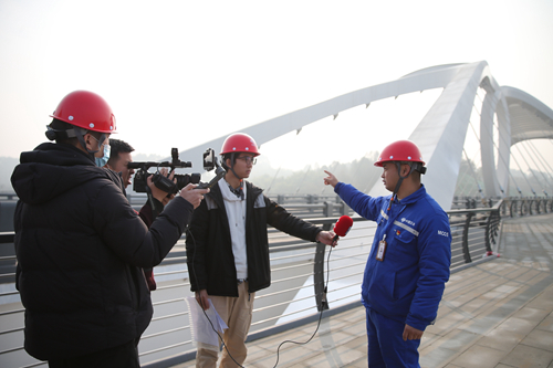 在天府新區(qū)的創(chuàng)意路項(xiàng)目,媒體記者們先“入地”后“望天”,相繼探訪(fǎng)了全國(guó)最大的單層多倉(cāng)綜合管廊建設(shè)情況,參觀(guān)了全國(guó)首座水滴形粱拱分離系桿拱橋的獨(dú)特造型,在充滿(mǎn)高新技術(shù)與獨(dú)特創(chuàng)意的建設(shè)現(xiàn)場(chǎng)感受著中國(guó)五冶助力天府新區(qū)科學(xué)城建設(shè)的匠心。