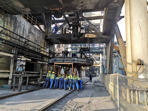 河北安豐鋼鐵有限公司干熄焦定修理現(xiàn)場(chǎng),為保障春節(jié)期間設(shè)備更好運(yùn)轉(zhuǎn),項(xiàng)目人員齊心協(xié)力,抖擻精神,在現(xiàn)場(chǎng)喊起勞動(dòng)號(hào)子,確保定修的最后一道工序——更換焦罐蓋圓滿完成。