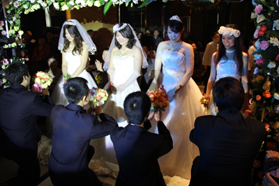 婚禮當(dāng)天,四公司工會代表該公司全體員工為新人送上祝福,何陵驥為四對新人證婚,宣布四對新人結(jié)為恩愛夫妻,譚興山恭祝四對新人永結(jié)同心、鐘愛一生、美滿幸福!新人在親戚朋友和同事們的共同見證下,大聲齊呼“我們結(jié)婚啦!”,激動的心情難于言表,相擁喜極而泣,感謝大家給了他們一個難忘的婚禮。