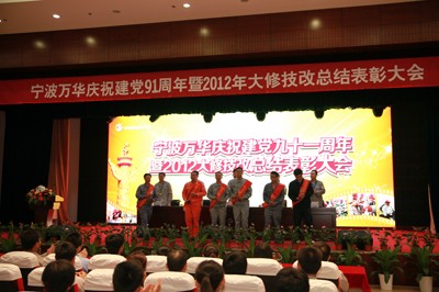 最近,寧波萬華聚氨酯有限公司召開2012年大修技改總結(jié)表彰大會對五冶集團上海有限檢修公司本次年大修工作給予充分肯定,并頒發(fā)“特殊貢獻獎”予以鼓勵。
