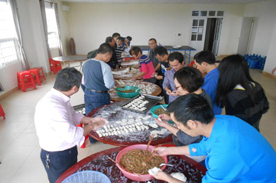 活動前,大家做了很多準備工作。一切就緒,大家紛紛捋起衣袖,揉面、和餡,切段、搟皮,各有分工,其樂融融。大家來自五湖四海,包法各具地方特色,包出來的餃子也各式各樣。女同志心靈手巧,包餃子功夫嫻熟,包出的餃子精美別致,大家拍手叫絕;男同志手藝略顯生疏,卻不甘落后,不滿足于傳統(tǒng)餃子的形狀,試著玩起各種花樣。頃刻間,獨具特色的花式餃子紛紛呈現(xiàn)在大家面前,于是又彼此“評頭論足”起來。當現(xiàn)場工地上的同事下班回到食堂時,一盆盆熱騰騰的餃子已端到了桌上,品嘗著同事們親手包的餃子,大家吃在嘴里,甜在心上,感受到了越南臺塑項目部這個大家庭的幸福和溫暖。??(李娜娜)