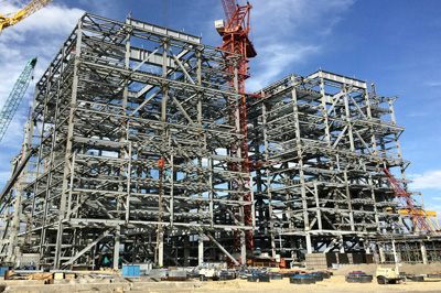 鍋爐框架鋼結(jié)構(gòu)主體吊裝現(xiàn)場(chǎng)