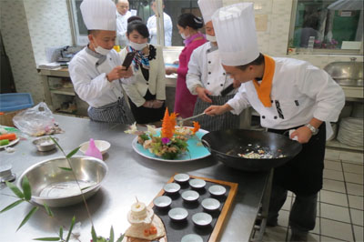 為迎戰(zhàn)大賽,五冶大廈廚師團(tuán)隊(duì)作了精心準(zhǔn)備,以求色、香、味、形、質(zhì)俱佳,既要具有良好口感,又要使作品富有藝術(shù)性,最終推出了“魚(yú)米之鄉(xiāng)”“養(yǎng)身豆腐”和“迎客松”三道菜肴參賽。